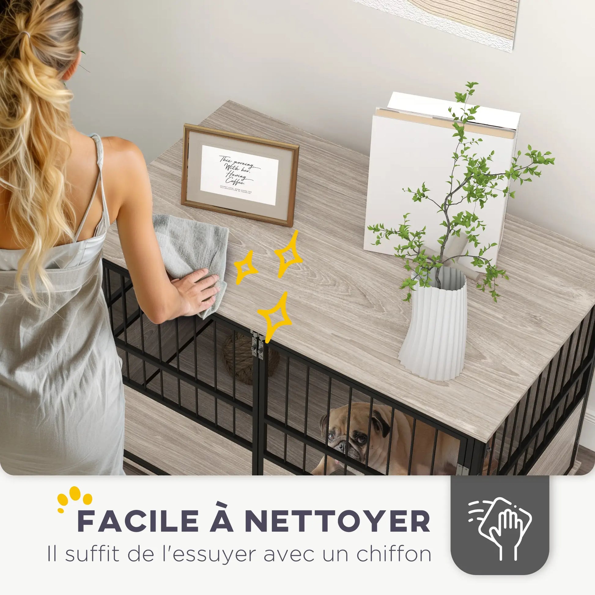• - Niche pour chien2 en 1 : sert à la fois de table d'appoint et de cage pour chien