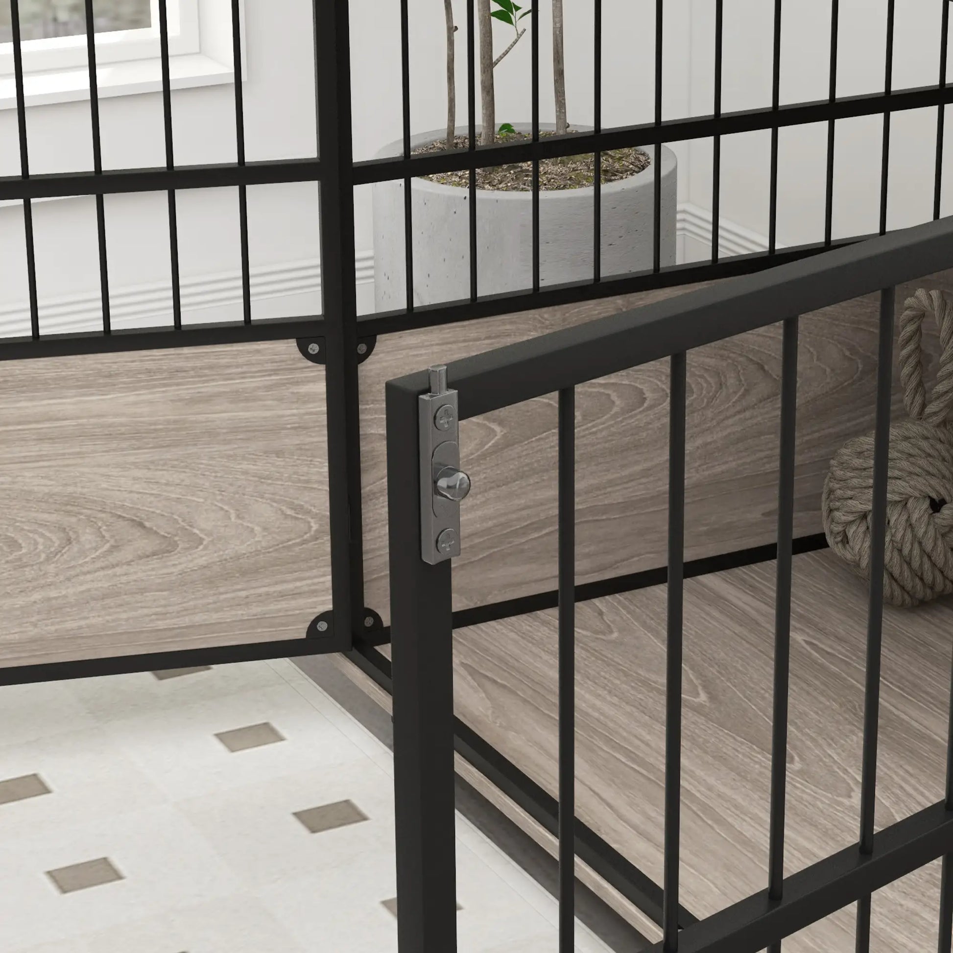 Découvrez cette cage pour chien, alliant fonctionnalité et style. Cette cage polyvalente peut aussi servir de table d'appoint, avec un plateau spacieux pour votre décoration. Accès facile avec trois portes, transformez l'espace de votre animal en un accent décoratif moderne et raffiné.