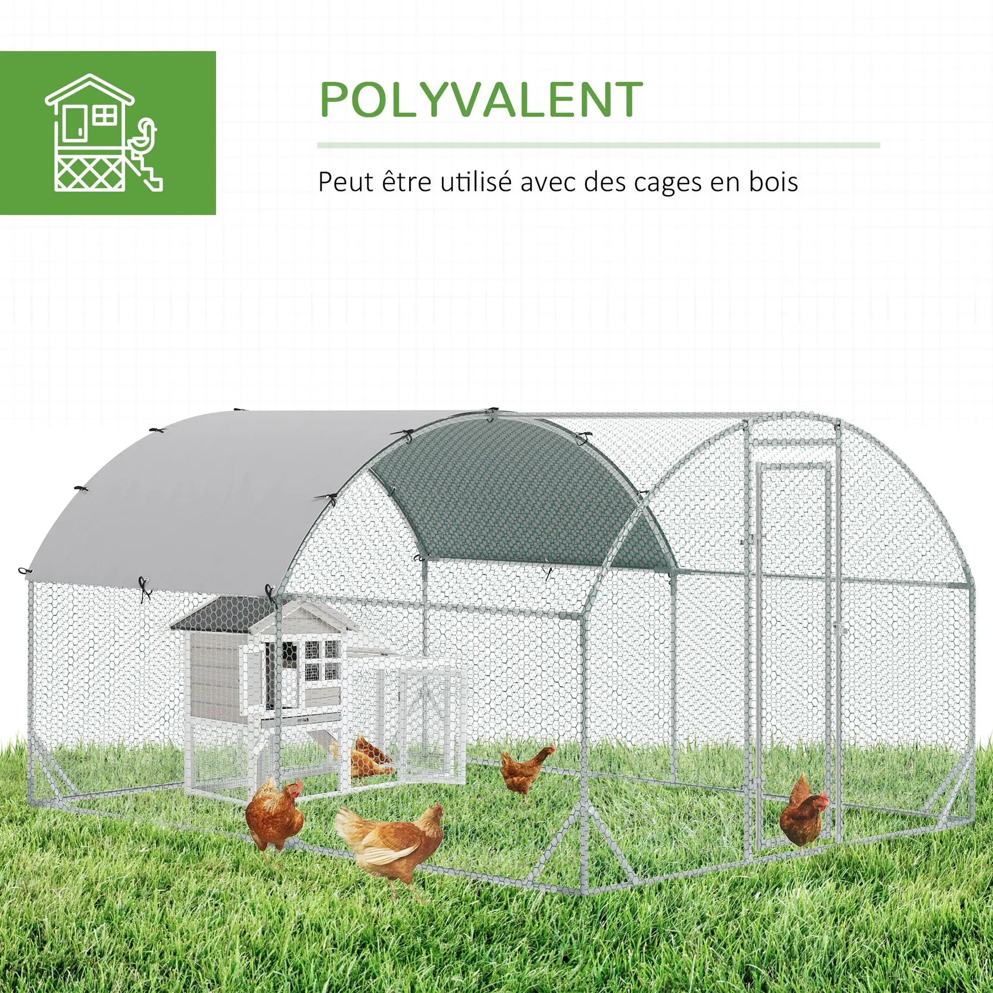 Cette cage à poules est extra large, permettant une multiplicité de poulets. Le toit offre une meilleure protection contre la pluie tout en assurant une résistance aux UV. La conception permet une combinaison avec des cages en bois lorsque vous souhaitez de vrais murs. Donnez à vos poules la liberté qu'elles méritent tout en les gardant en sécurité et heureuses grâce au poulailler de promenade !