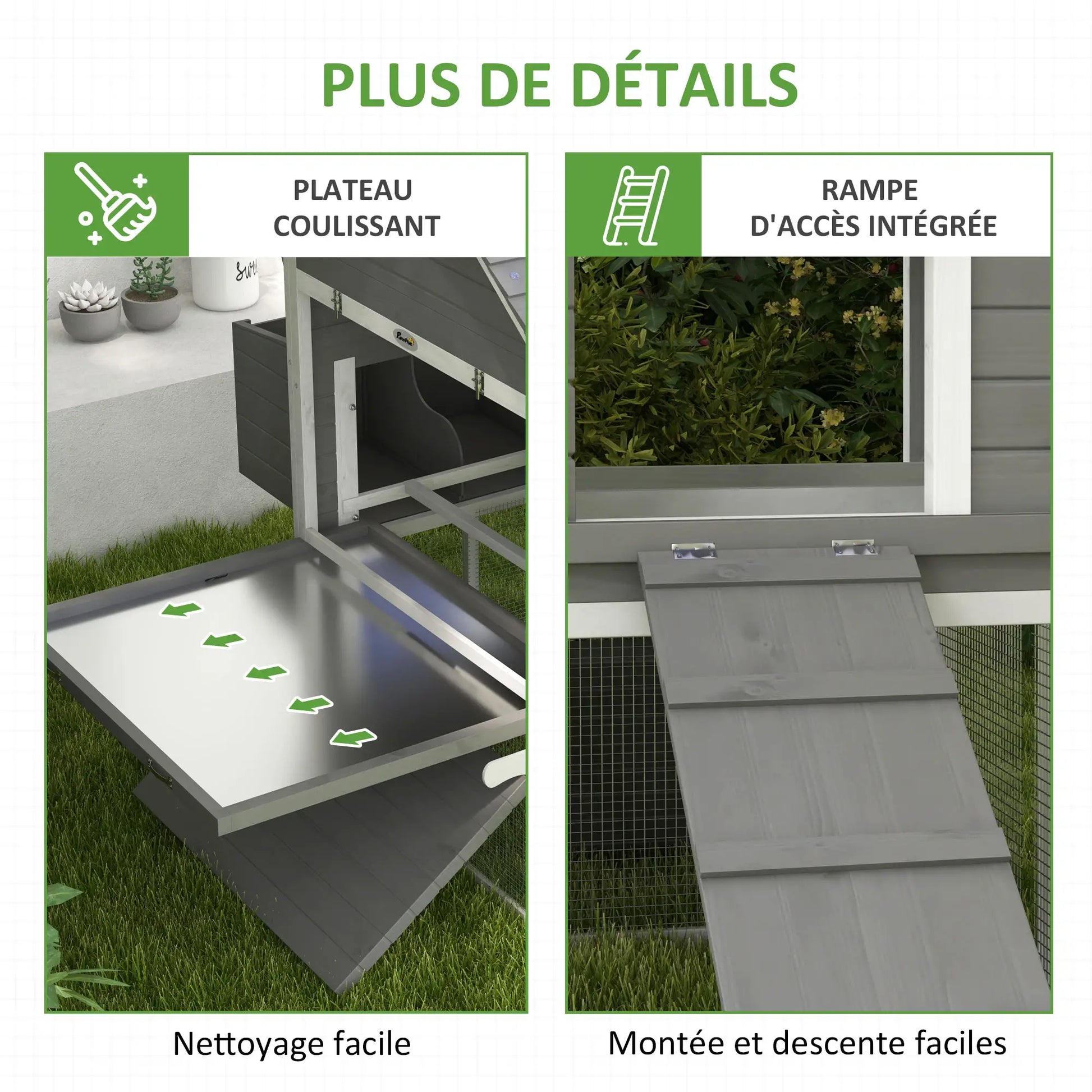• Le Bois : C'est le choix traditionnel et le plus esthétique. Le bois est un excellent isolant naturel, protégeant vos poules du chaud comme du froid. Nos poulaillers en bois sont traités avec des produits non-toxiques pour résister aux intempéries.
