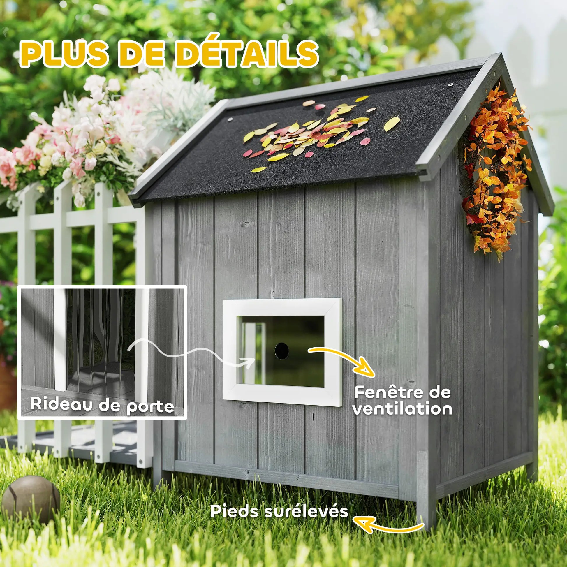 • - La terrasse de la niche pour chien extérieure permet aux chiens de profiter confortablement du bain de soleil